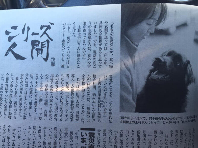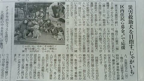 現在じゃがいもは、災害救助の仕事がない間は介助犬として活動したり、講演会に参加したりしています。