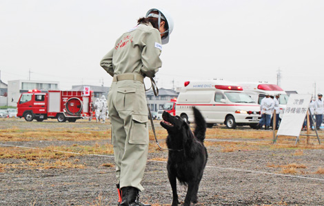 優れた嗅覚で災害による行方不明者の捜索にあたります。