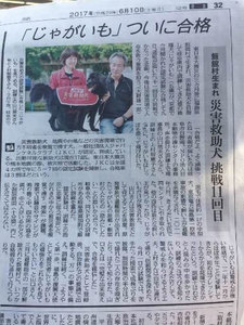 代表山口・訓練士上村とともに、2012年から約5年もの間、災害救助犬への挑戦をあきらめずに続けてきたじゃがいも。