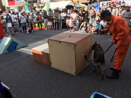 日本動物介護センターの活動紹介のパネル展示と、救助犬のデモンストレーションをおこないました!